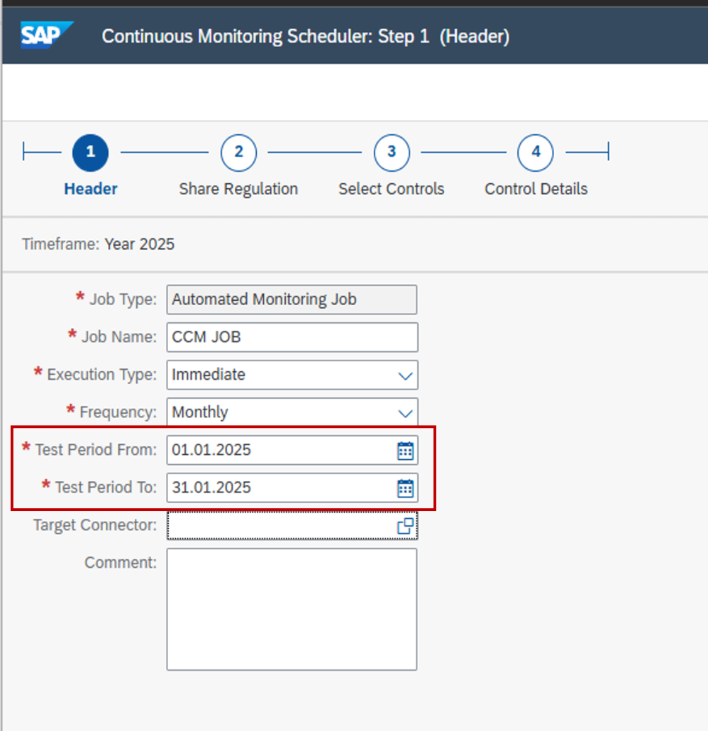 This option filters data within a specific time frame based on the job step dates in the CCM Scheduler. For example, if the Test Period is set for 01.01.2025 to 31.01.2025, the filter in the Business rules will use these exact dates for monitoring.