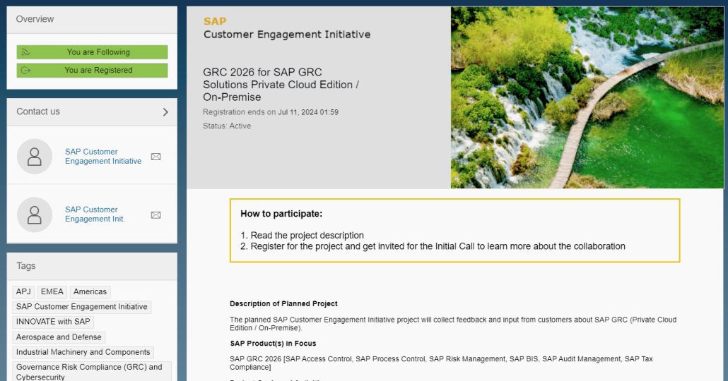 Alle SAP GRC-Kunden und -Partner waren herzlich eingeladen, an der bevorstehenden SAP Customer Engagement Initiative (CEI) teilzunehmen.. Die neue SAP GRC-Version, bekannt als GRC 2026, wird einen bedeutenden Meilenstein in der Entwicklung der SAP GRC-Produktfamilie darstellen. Die Teilnehmer hatten die einzigartige Möglichkeit, die Zukunft von SAP GRC zu beeinflussen und zu bedeutenden Innovationen und Verbesserungen beizutragen.