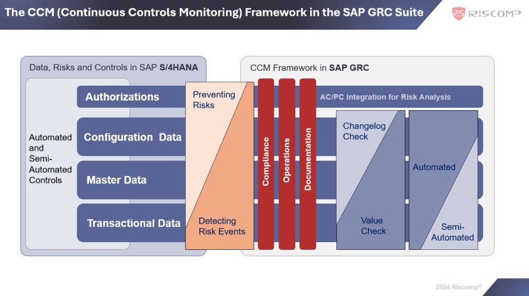 We have created a graphical summary for you, reflecting some key risk, end-user, and implementation aspects of the CCM framework in SAP GRC.